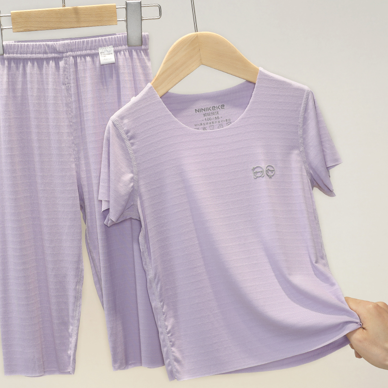 清仓 23149 优可丝空气条随心裁短袖七分裤套装家居服通用薄款 6925200167452114365 香芋紫110码身高90-100cm左右\ 北京市北京市 |