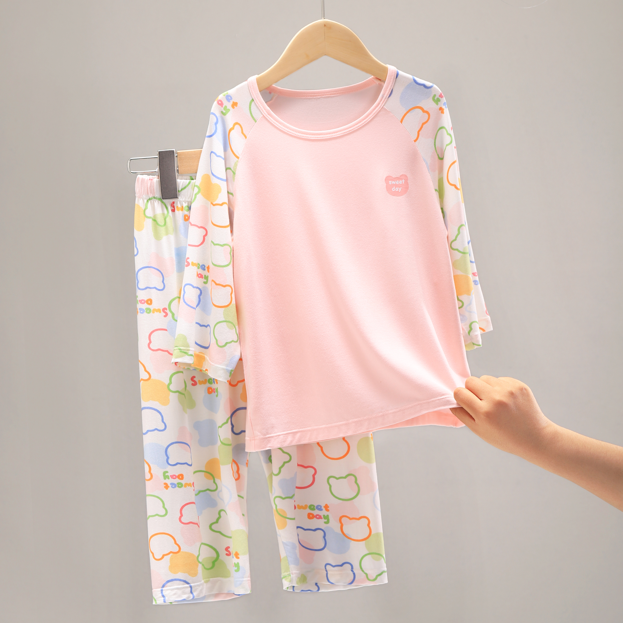 夏季女童睡衣a类优可丝薄款七分袖宝宝家居服插肩女童家居服a018d 6947642697103250749 七彩小熊-套装【7a抑菌】A018d120号(110-120cm/40-50斤 黑龙江省绥化市 |