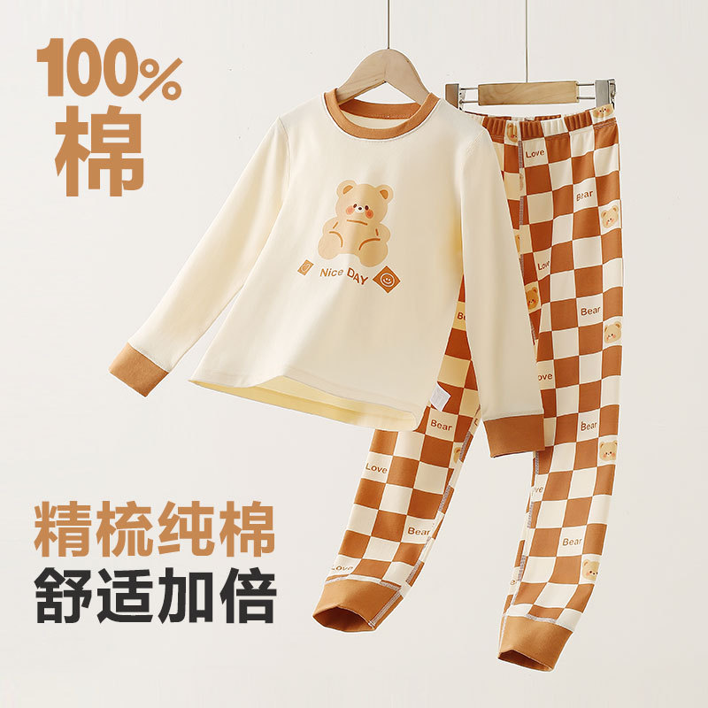 儿童纯棉秋衣秋裤秋冬季男童家居服套装a类长袖长裤中大童 A006D 6922006205638737554 格子小熊140号130-140cm/60-70斤 北京市北京市 |