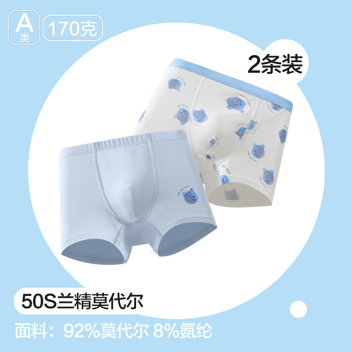 儿童内裤莫代尔春夏薄款男童中大童宝宝卡通平角裤2条装26SS003E 6925412505327402178 蓝色熊头(2条装)130号120-130cm/50-60斤 天津市天津市 |